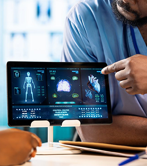 We integrate AI into healthcare software for clinical decision support, automated medical coding, predictive readmission alerts, diagnostic image analysis assistance, appointment-scheduling optimisation, and patient-communication automation, with all AI outputs presented as decision-support tools, not diagnostic replacements.